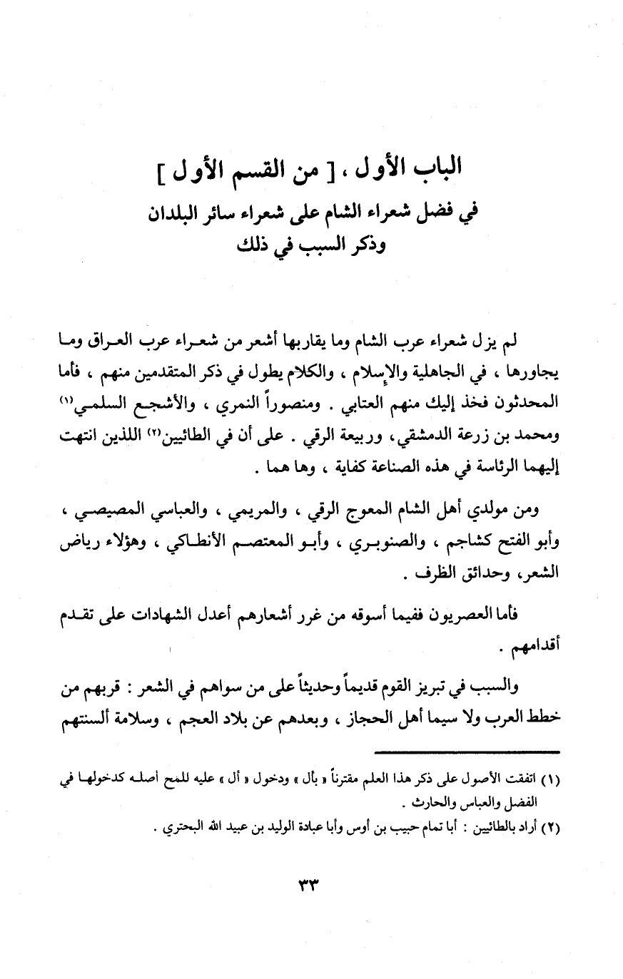 الْبَاب الأول من الْقسم الأول فِي فضل شعراء الشَّام على شعراء سَائِر الْبلدَانِ وَذكر السَّبَب فِي ذَلِك