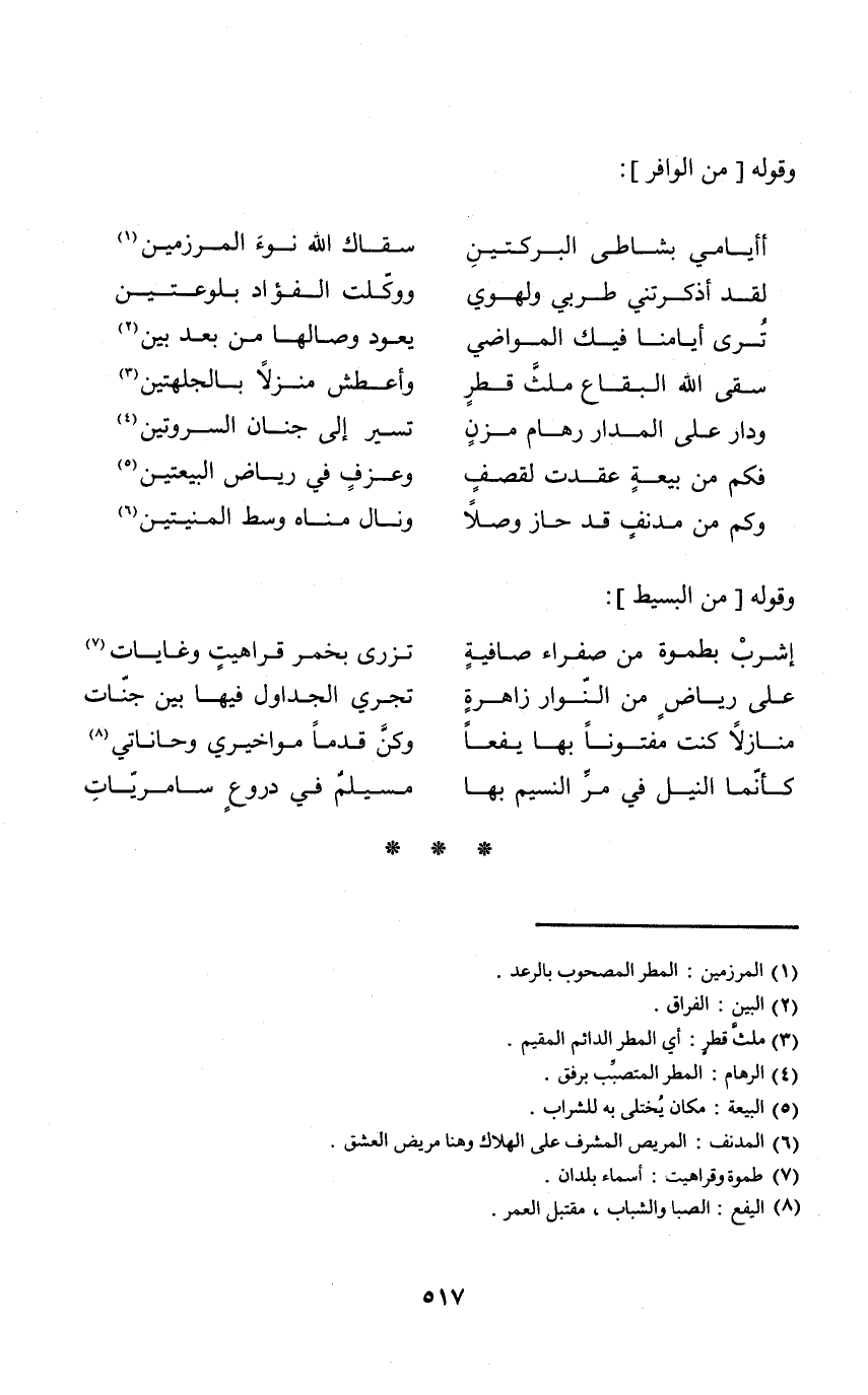 (على رياض من النوار زاهرة ... تجْرِي الجداول فِيهَا بَين جنَّات)