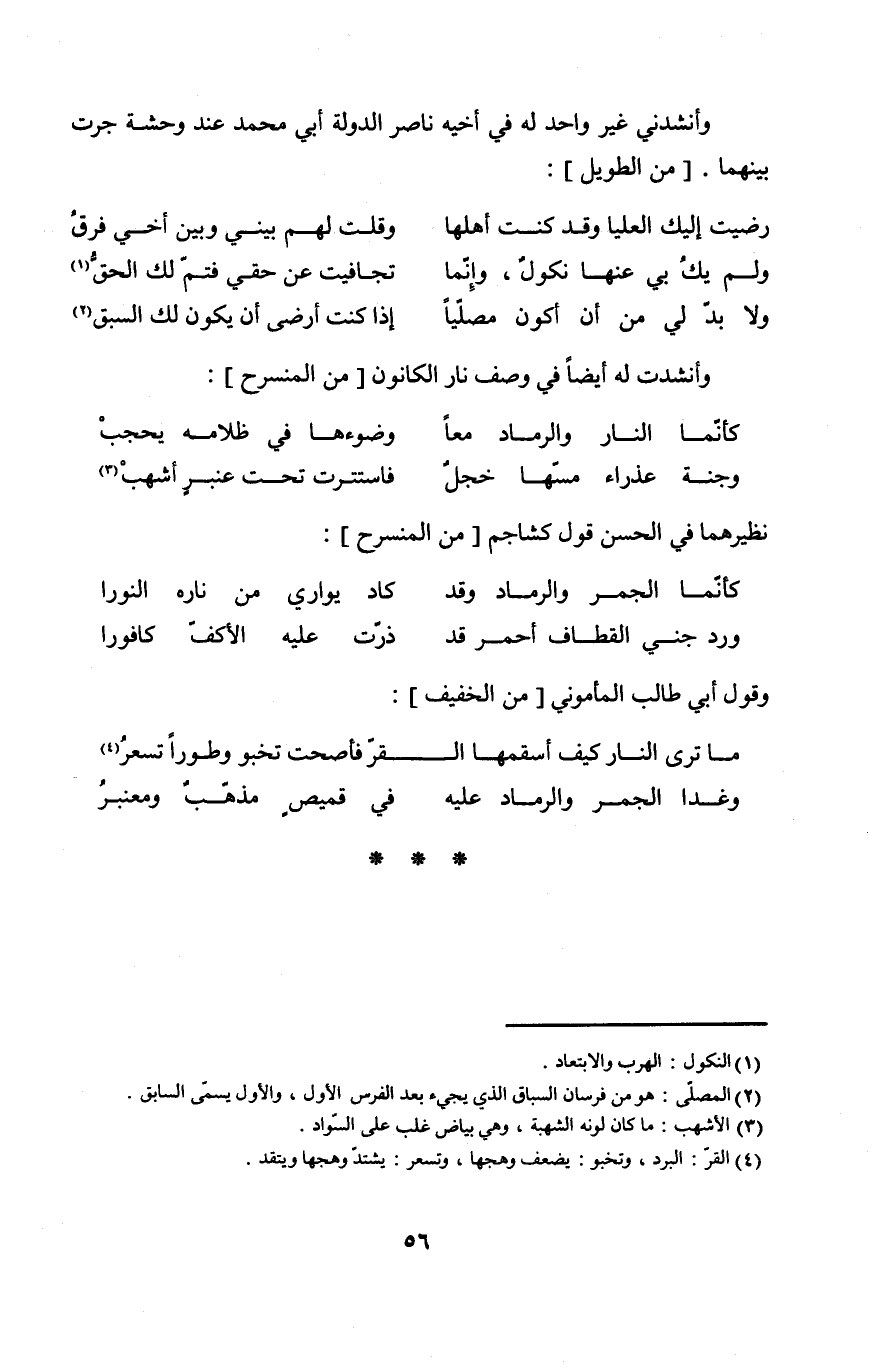وأنشدني غير وَاحِد لَهُ فِي أَخِيه نَاصِر الدولة أبي مُحَمَّد عِنْد وَحْشَة جرت بَينهمَا