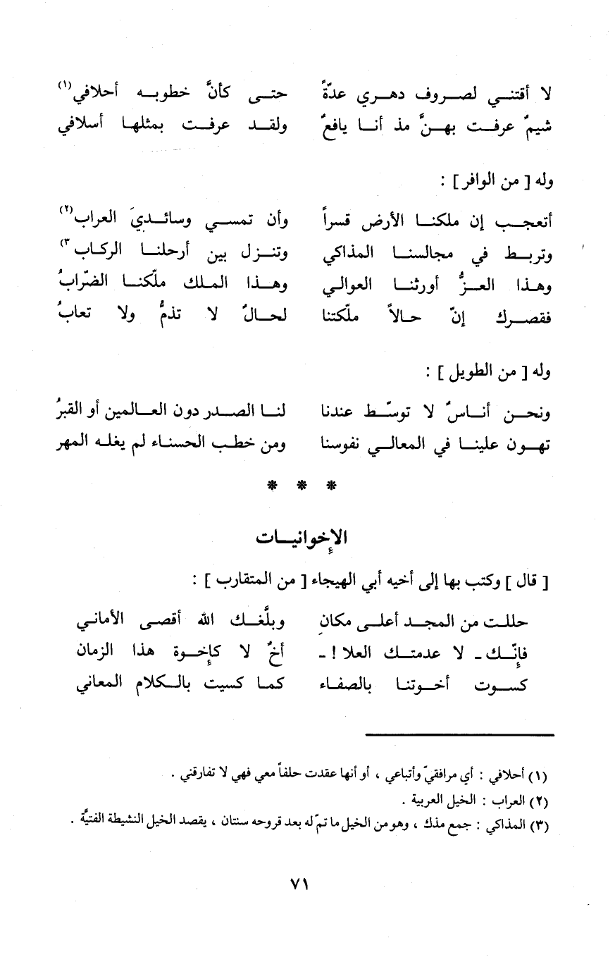 (كسوت أخوتنا بالصفاء ... كَمَا كُسِيت بالْكلَام الْمعَانِي) // من المتقارب //