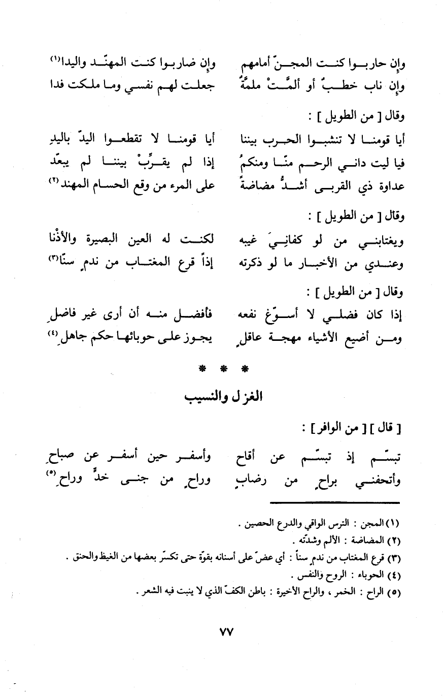 (أيا قَومنَا لَا تنشبوا الْحَرْب بَيْننَا ... أيا قَومنَا لَا تقطعوا الْيَد بِالْيَدِ)
