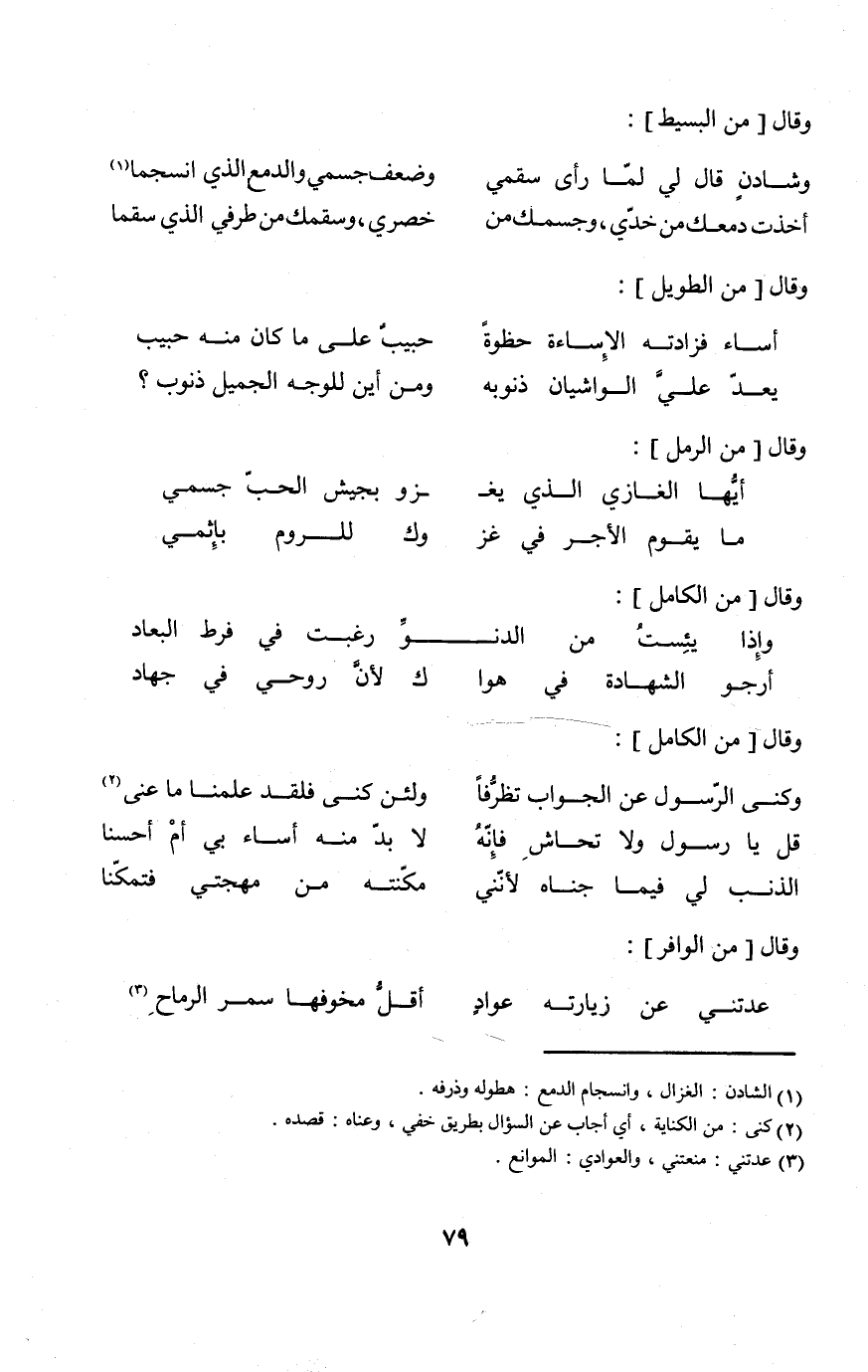 (أَرْجُو الشَّهَادَة فِي هَوَاك ... لِأَن روحي فِي جِهَاد) // من الْكَامِل //