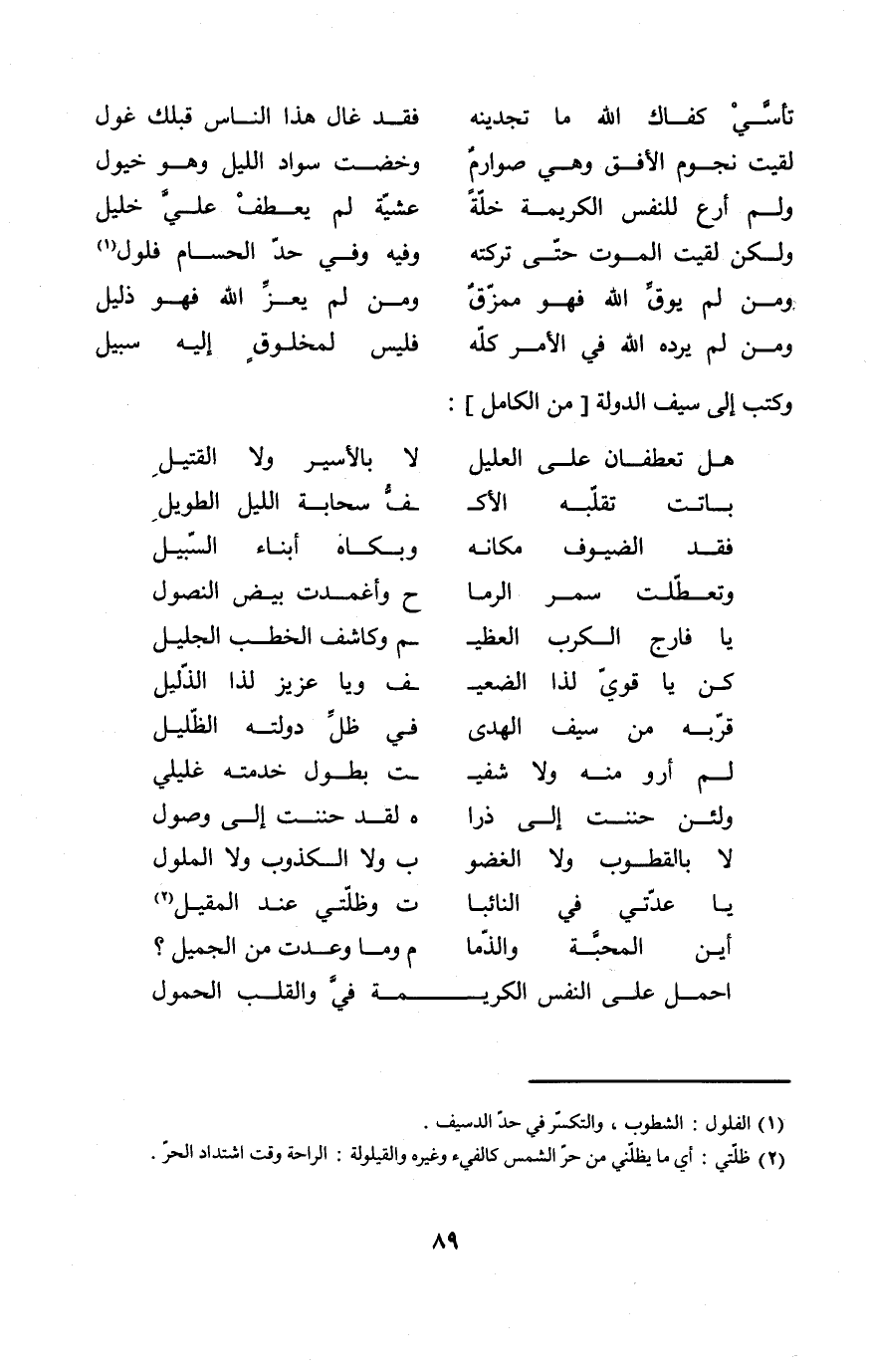 (احْمِلْ على النَّفس الْكَرِيمَة ... فِي وَالْقلب الحمول) // من الْكَامِل //