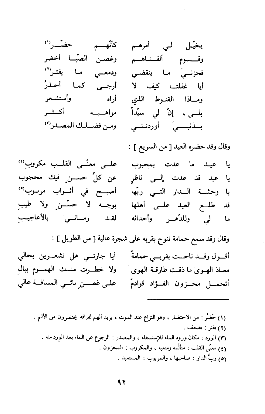 (يَا عيد مَا عدت بمحبوب ... على معنى الْقلب مكروب)