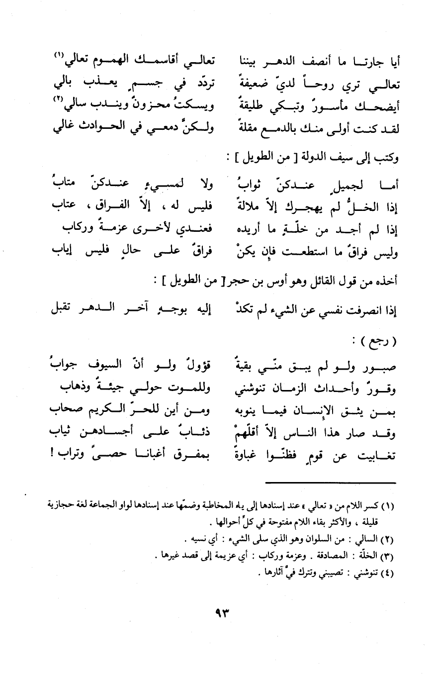 (أيا جارتا مَا أنصف الدَّهْر بَيْننَا ... تعالي أقاسمك الهموم تعالي)