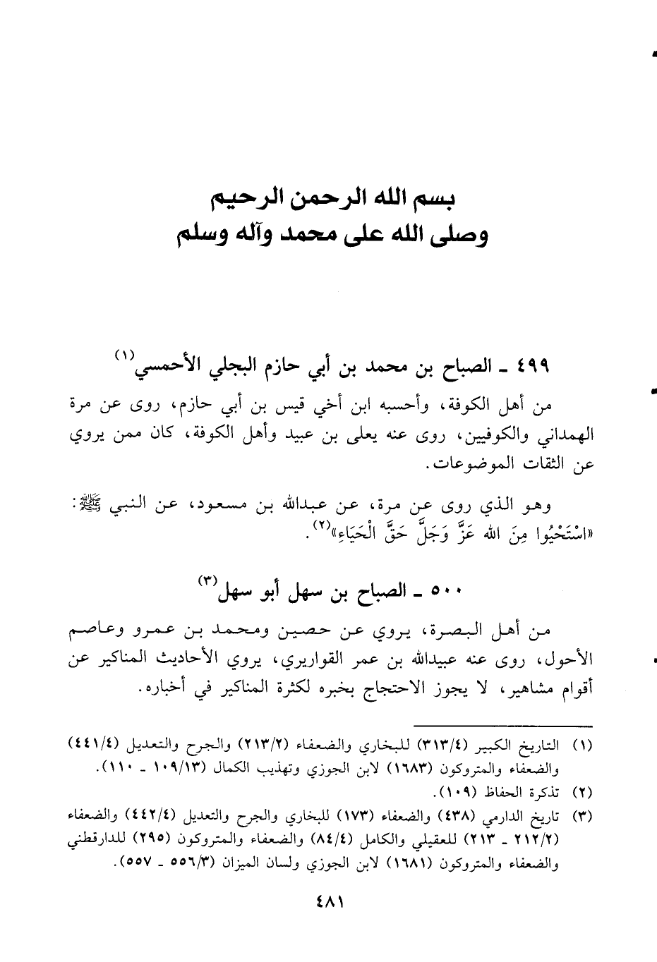٤٩٩ - الصباح بن محمد بن أبي حازم البجلي الأحمسي (١)