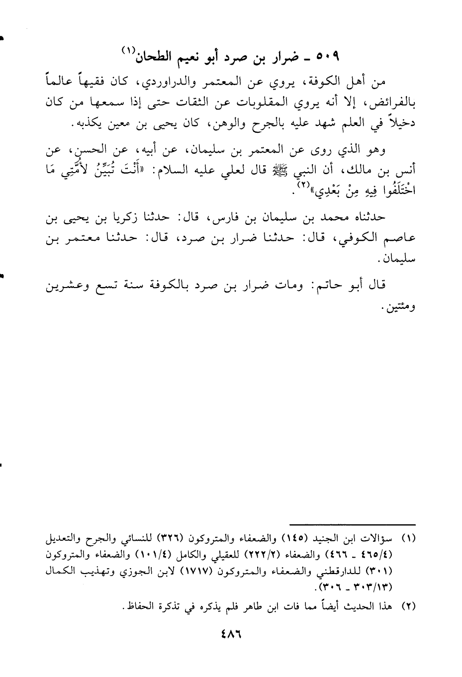 ٥٠٩ - ضرار بن صرد أبو نعيم الطحان (١)