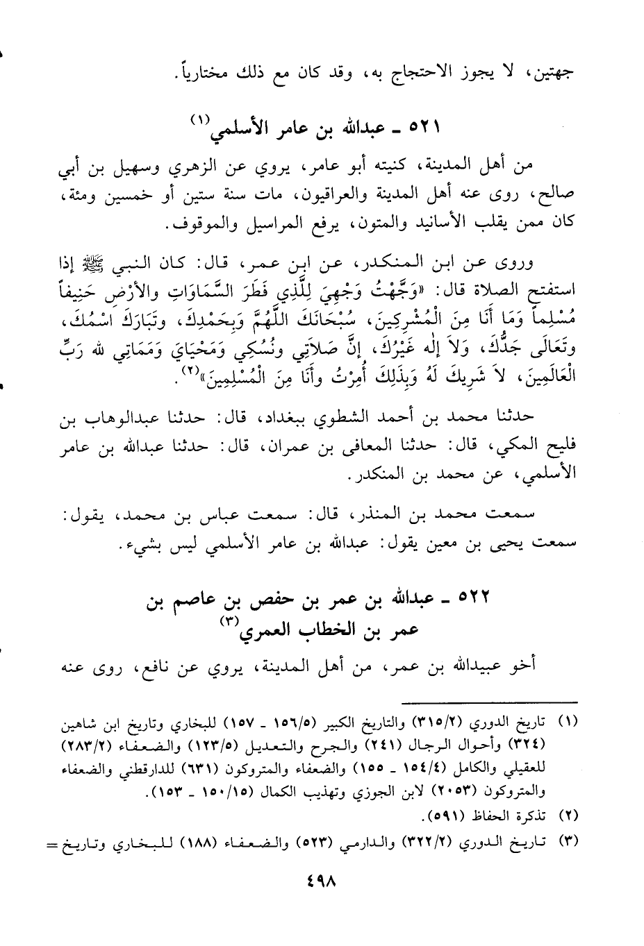 ٥٢١ - عبد الله بن عامر الأسلمي (١)