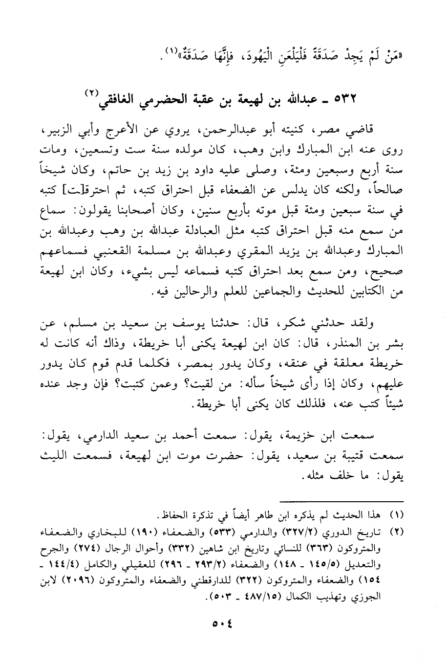٥٣٢ - عبد الله بن لهيعة بن عقبة الحضرمي الغافقي (٢)