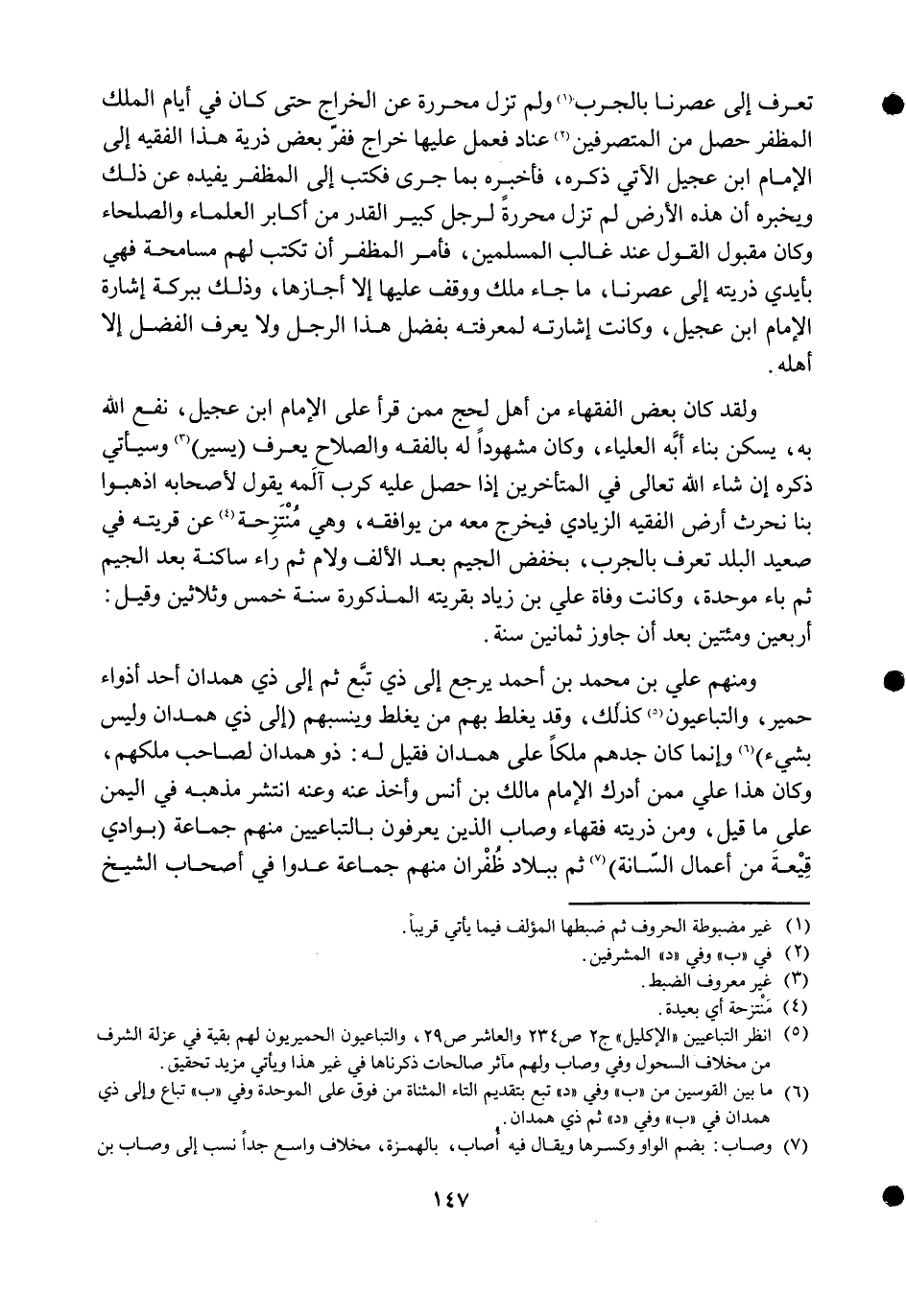 وَمِنْهُم عَليّ بن مُحَمَّد بن أَحْمد يرجع إِلَى ذِي تبع ثمَّ إِلَى ذِي هَمدَان أحد أذواء حمير والتباعيون كَذَلِك وَقد يغلط بهم من يغلط وينسبهم إِلَى ذِي هَمدَان وَلَيْسَ بِشَيْء وَإِنَّمَا كَانَ جدهم ملكا على هَمدَان فَقيل لَهُ ذُو هَمدَان لصَاحب ملكهم وَكَانَ هَذَا عَليّ مِمَّن أدْرك الإِمَام مَالك بن أنس وَأخذ عَنهُ وَعنهُ انْتَشَر مذْهبه فِي الْيمن على مَا قيل وَمن ذُريَّته فُقَهَاء وصاب الَّذين يعْرفُونَ بالتباعيين مِنْهُم جمَاعَة بوادي قيعة من أَعمال السانة ثمَّ بِبِلَاد ظفران مِنْهُم جمَاعَة عدوا فِي أَصْحَاب الشَّيْخ