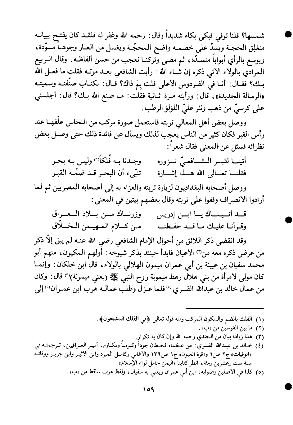 فَقُلْنَا تَعَالَى الله هَذَا إِشَارَة ... تنبىء أَن الْبَحْر قد ضمه الْقَبْر ... وَوصل أَصْحَابه البغداديون لزيارة تربته والعزاء بِهِ إِلَى أَصْحَابه المصريين ثمَّ لم أَرَادوا الِانْصِرَاف وقفُوا على تربته وَقَالَ بَعضهم بَيْتَيْنِ فِي الْمَعْنى ... قد أَتَيْنَاك يَا ابْن إِدْرِيس ... وزرناك من بِلَاد الْعرَاق