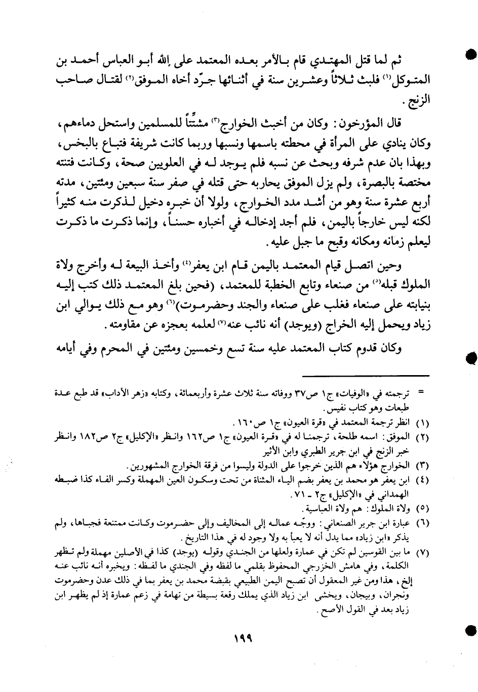 ثمَّ لما قتل الْمُهْتَدي قَامَ بِالْأَمر بعده الْمُعْتَمد على الله أَبُو الْعَبَّاس أَحْمد بن المتَوَكل فَلبث ثَلَاثًا وَعشْرين سنة فِي أَثْنَائِهَا جرد أَخَاهُ الْمُوفق لقِتَال صَاحب الزنج