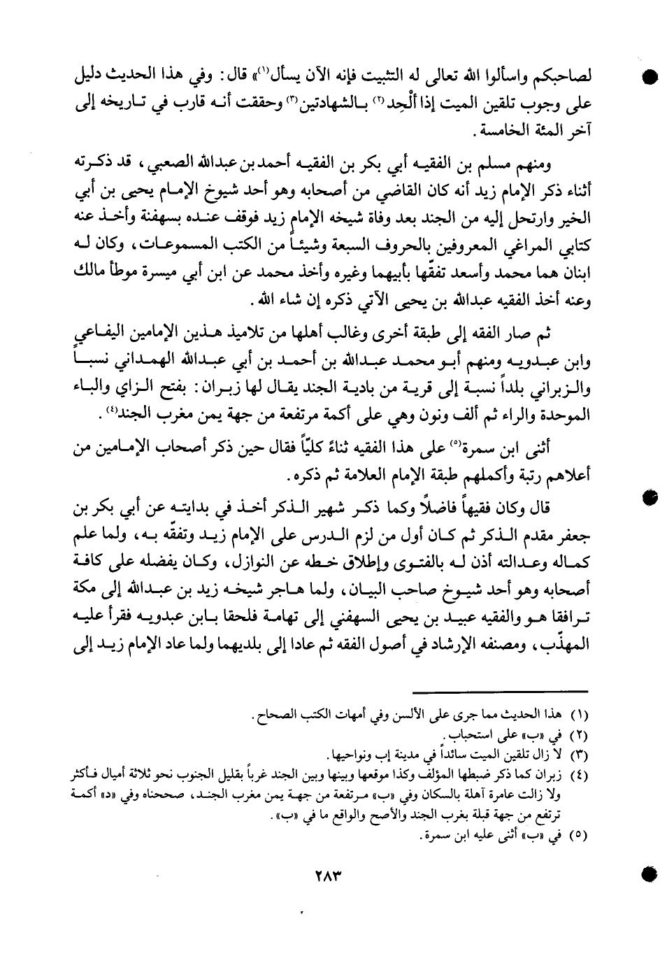 قَالَ وَكَانَ فَقِيها فَاضلا وكما ذكر شهير الذّكر أَخذ فِي بدايته عَن أبي بكر بن جَعْفَر مقدم الذّكر ثمَّ كَانَ أول من لزم الدَّرْس على الإِمَام زيد وتفقه بِهِ وَلما علم كَمَاله وعدالته أذن لَهُ بالفتوى وَإِطْلَاق خطه عَن النَّوَازِل وَكَانَ يفضله على كَافَّة أَصْحَابه وَهُوَ أحد شُيُوخ صَاحب الْبَيَان وَلما هَاجر شَيْخه زيد بن عبد الله إِلَى مَكَّة ترافقا هُوَ والفقيه عبيد بن يحيى السهفني إِلَى تهَامَة فلحقا بِابْن عبدويه فَقَرَأَ عَلَيْهِ الْمُهَذّب ومصنفه الْإِرْشَاد فِي أصُول الْفِقْه ثمَّ عادا إِلَى بلديهما وَلما عَاد الإِمَام زيد إِلَى