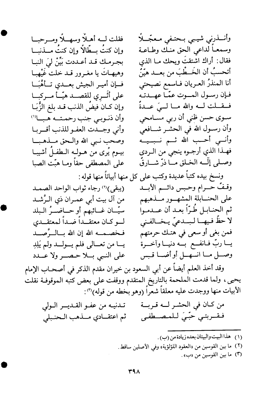 فقربتي حبي للمصطفى ... ثمَّ اعتقادي مَذْهَب الْحَنْبَلِيّ ...