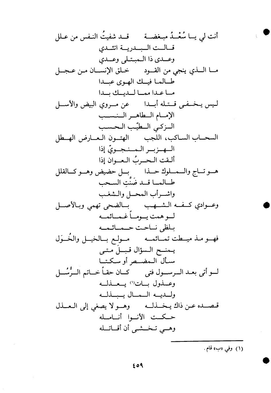 .. أَنْت لي يَا سعد مبغضة ... قد شفيت النَّفس من علل