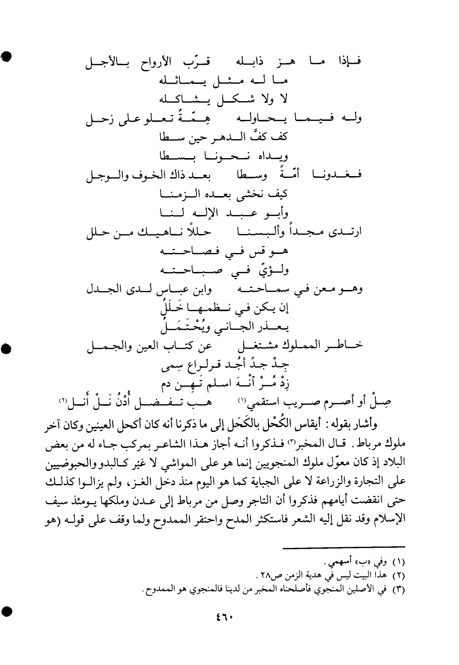 ... صل أَو أَصْرَم صريب استقمي ... هَب تفضل أدن نل أنل ... وَأَشَارَ بقوله أيقاس الْكحل بالكحل إِلَى مَا ذكرنَا أَنه كَانَ أكحل الْعَينَيْنِ وَكَانَ آخر مُلُوك مرباط