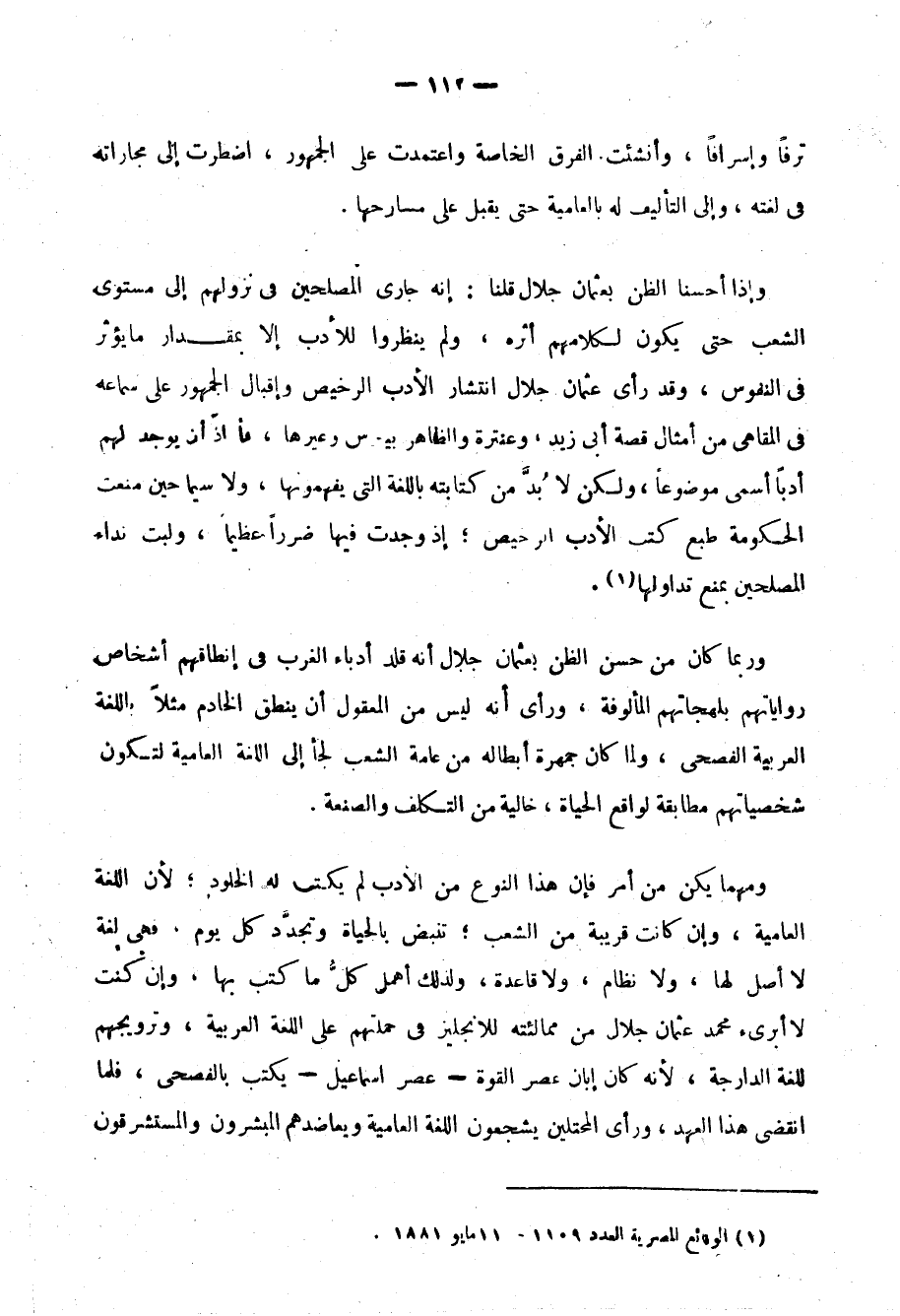 وأسلوب عثمان جلال في "بول وفرجيني" كما ترى من الأساليب الخالية من التعقيد, والتي تنطلق في يسر ورشاقة, ويدل على تمكنه من اللغتين الفرنسية والعربية، فقد حصر على الأصل كل الحرص، وأداه بخير أداء، ولولا تمصيره لأشخاص الرواية، وجعله الكنيسة مسجدًا، وبرج ناقوسها مئذنة، وصبغها بالصبغة المصرية الخالصة, لجاءت ترجمته مثلًا في الترجمة؛ إذ أضفى عليها من الأمانة، وخفة الظل، وسهولة اللفظ شيئًا كثيرًا.