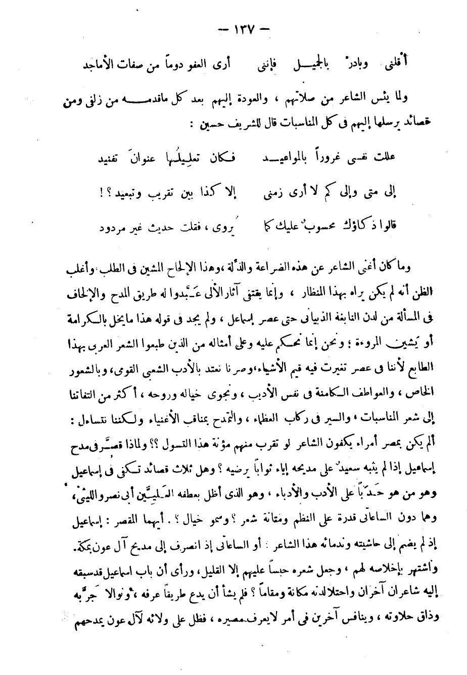 وعلى الرغم من هذا الولاء، ومن دءوب الشاعر على مدحهم في كل مناسبة, وهو عنهم بعيد, فإنهم لم يستجيبوا لرجائه دعوته إليهم، ولعل للمنافسات التي كانت بين الشاعر، وبين بعض الحجازين1 أثرًا في هذه الجفوة، فقلما خلت حاشية أمير عظيم, سمح النفس, سخي اليد من أمثال هؤلاء الحساد لكلِّ من نال لديه حظوةً أو نبغ وقصروا, وما أمر المتنبي وسيف الدولة بمجهول، ولقد بلى