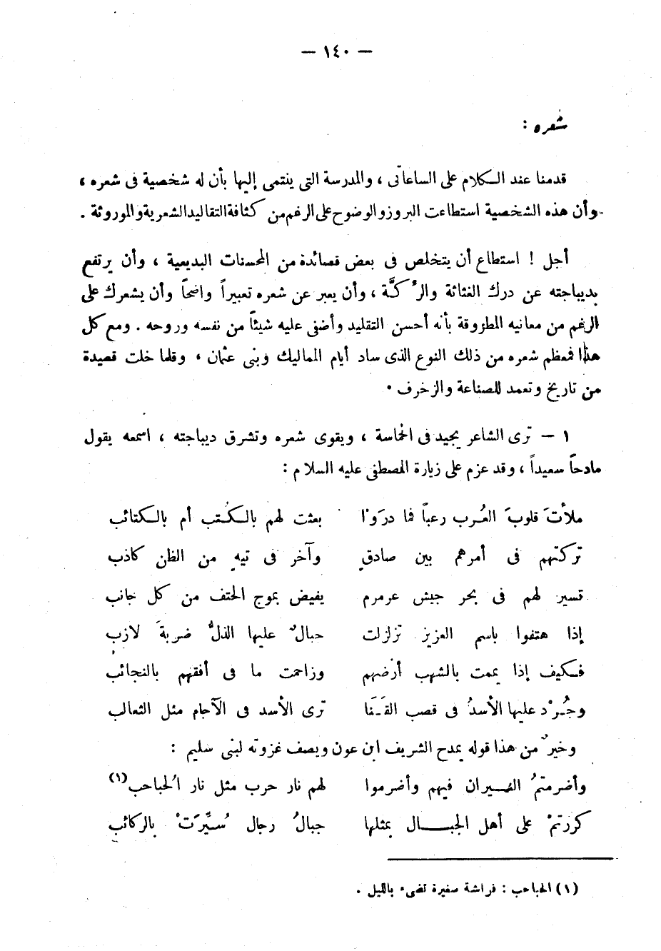 فهذه الديباجة القوية، وهذه الفحولة قد طال انتظار الشعر العربيّ لها, ولعل في حفظ الشاعر للمبتنبي ما جعله يجيد في الحماسة ووصف المعارك، كما كان المتنبي يجيدها وهو يمدح سيف الدولة، وقد شهد الساعاتي معارك آل عون مع أعدائهم, كما شهد المتنبي معارك سيف الدولة مع الروم وغيرهم.