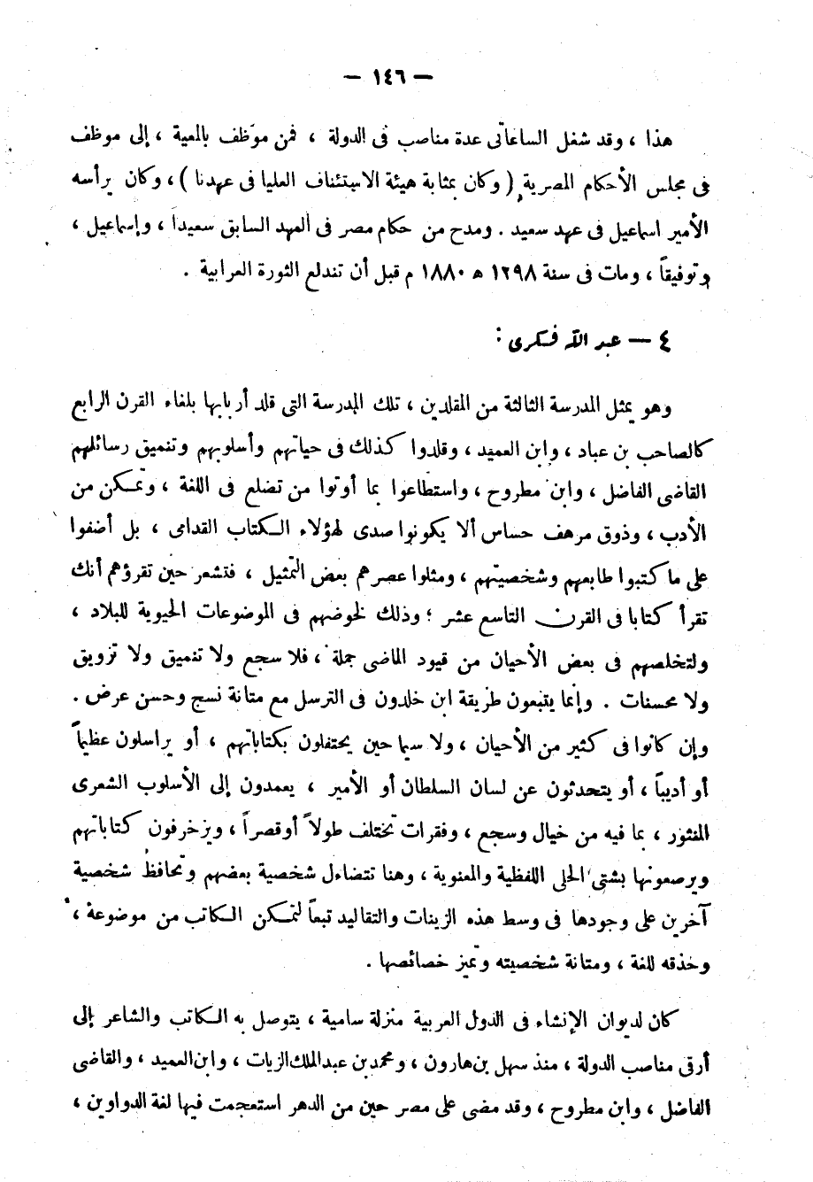 ولد بالحجاز سنة 1250هـ-1834م, من أب مصريّ1 وأم من بلاد المورة, وعاد به والده إلى مصر بعد عودة جيوش محمد علي من الحجاز، ولكنه توفي ولما يبلغ عبد الله الحادية عشرة من عمره، فكفله بعض أقاربه، ودخل الأزهر, وتلقى العلوم المتداولة على كبار مشايخه، وكان في نفس الوقت يدرس اللغة التركية، فلما حذقها عُيِّنَ في القلم التركيّ في الديوان الكتخدائي، وظل مع اشتغاله بالوظيفة يتردد على الأزهر، والتحق بعدة وظائف ديوانية، ثم عُيِّنَ بمعية سعيد، وتولَّى فيها تحرير الرسائل الديوانية بالتركية والعربية، وظلَّ في منصبه حتى تولى إسماعيل عرش مصر، فأبقاه وقربه وسافر معه مراتٍ إلى الآستانة، ثم عهد إليه بتثقيف أولاده وغيرهم من أمراء الأسرة، فكان يباشر تعليمهم أحيانًا، أو يشرف على المدرسين أخرى, ولما نُقِلَ إلى وزارة المالية, كان له الفضل في جمع الكتب الموجودة بها، وضمها إلى دار الكتب حين أنشأها علي مبارك. وبعد ذلك عهد إليه بترجمة اللوائح والقوانين، وتنقيحها, فأدى هذه المهمة الجليلة على أكمل وجه، ثم عُيِّنَ وكيلًا لديوان المكاتب الأهلية، فرفع مستواها وجعلها صالحةً لتغذية المدراس الأميرية، فوكيلًا لنظارة المعارف مع شغله منصب الكاتب الأول في مجلس النواب، وقد ارتفعت طريقة تعليم العربية على يده, وهجرت طريقة الأزهر، ثم عُيِّنَ وزيرًا للمعارف في وزارة محمود سامي البارودي، ولما استقالت الوزارة بسبب الثورة العرابية، اتهم بممالأته للثوار بعد انتهاء الثورة، وقبض عليه, ولكنه برئ، فأطلق سراحه, وعاقبوه بقطع راتبه، فراح يستعطف الخديوي توفيق، وقال في ذلك قصيدته المشهورة: