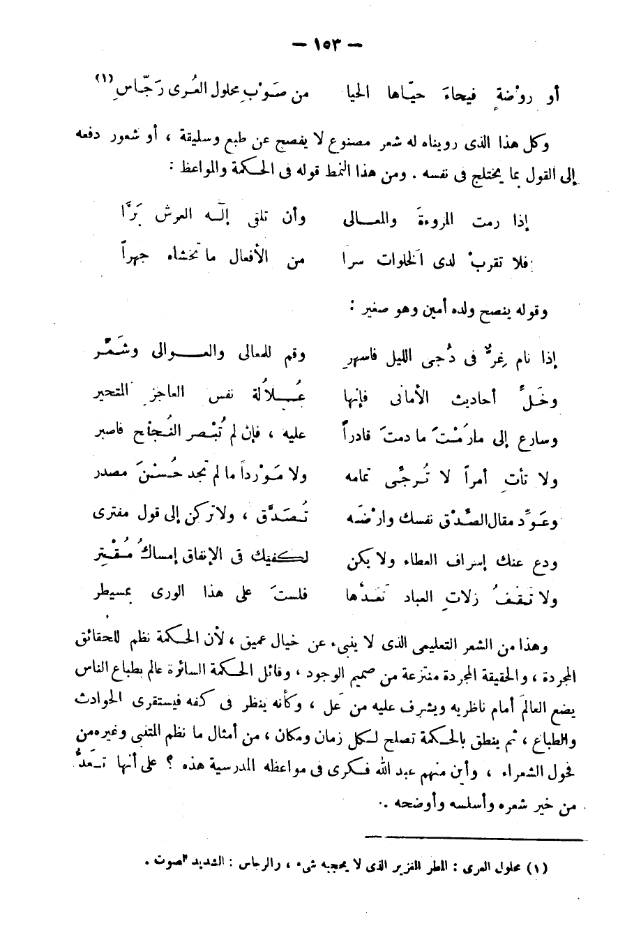 ولعلنا بعد لك هذا الذي رويناه له, قد أخذنا فكرةً واضحةً عن منزلته بين الشعراء، وقد ذكرنا آنفًا أنه اشتهر بالكتابة، وأنه كاتب أديب أكثر منه شاعر، وشعره في الواقع قليل إذا قيس بما ترك من مقالات ورسائل، وكتب وشروح وغير ذلك.