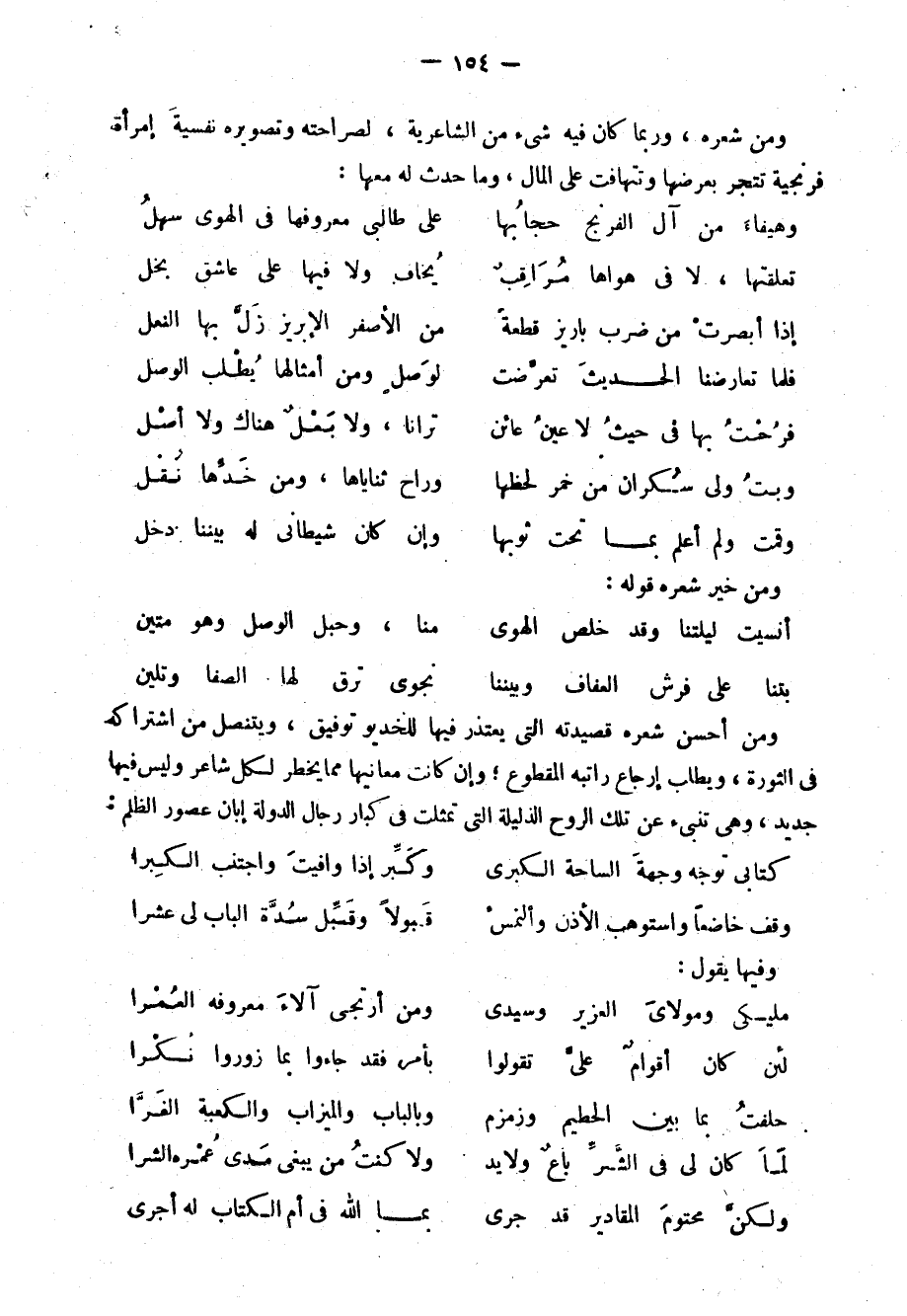 وسألت عن فلان وفلان، وهيان بن بيان، ممن ينتسب للعلم وأهله، ويتظاهر بشعار فضله، ولو كان العلم بلحيةٍ تعظم وتطول، وشوارب تحفّ وتستأصل، وعيون على ما بها من غمضٍ ورمضٍ تكحل، وعمامة تعظم حتى ترذل، وطيلسان يلف ويسدل، وكم يوسع ويسبل، وأحاديث خرافة تقص وتنقل، ومحفظة تفعم وتثقل، وسواك يظهر من العمامة نصفه، وكتاب يخرج من الجيب طرفه، ثم بتشدق في الكلام، وبتباله في المرام، وتعسف في الأفهام، وحرص على الحطام، ثم يقول الإنسان: حضرت درس فلان، وسمعت من لفظه باللسان، وقضيت في العلم كذا سنة من الزمان، فهم أعلم من أقلته الغبراء، وأفقه من أظلته الخضراء، وإن كان للعلم غير هذه الآلات، فما لهم سوى هذه الحالات, غاية الأمر أنهم قضوا أرذل العمر في كتب معدودة، وشروح موجودة، وهم يكررونها ولا يدرونها، ويقررونها ولا يحررونها، ويتداولونها ولا يعقلونها، ولو صرف حماري هذا العمر فيها، لأصبح فقيهًا، وأضحى نبيهًا، والذي يظهر مينهم وشينهم, وعلامة ما بيننا وبينهم, أن يؤمر أحدهم برقعةٍ تكتب لحاجة معهودة،