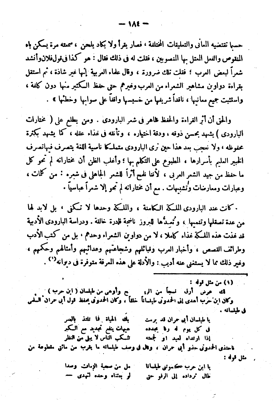 ومما يدل كذلك على سعة اطلاع البارودي قوله: