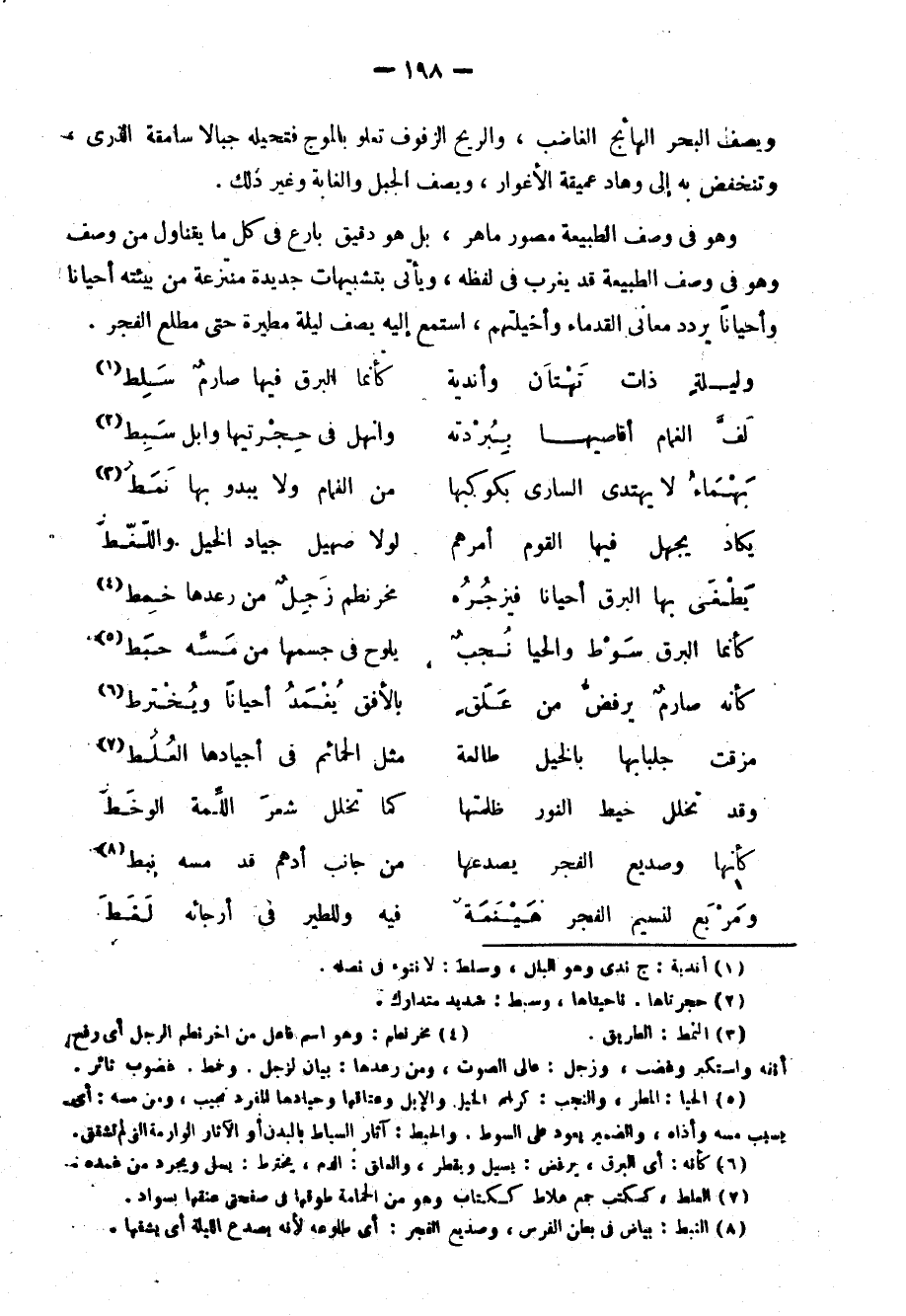8 النبط: بياض في بطن الفرس، وصديع الفجر: أي: طلوعه؛ لأنه يصدع الليلة, أي: يشقها.