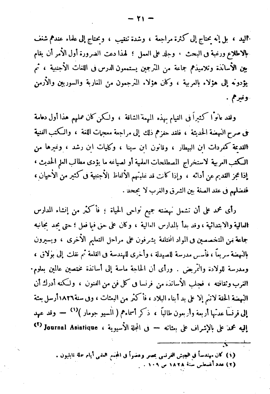 ورأي كذلك أنه لن يستقيم له الأمر حتى يقضي على المماليك لتمردهم وكثرة شغبهم، فأبادهم1؛ وأنه لابد له من جيشٍ قويٍّ يُقِرُّ به الأمن, ويصون هيبة الحكم في الداخل، ويدفع به غارة المغيرين من الخارج، فانتدب طائفةً من أساتذة الفنون العسكرية بأوروبا، وأرسلهم مع مماليكه إلى أطراف الصعيد؛ ليدربوهم هناك.