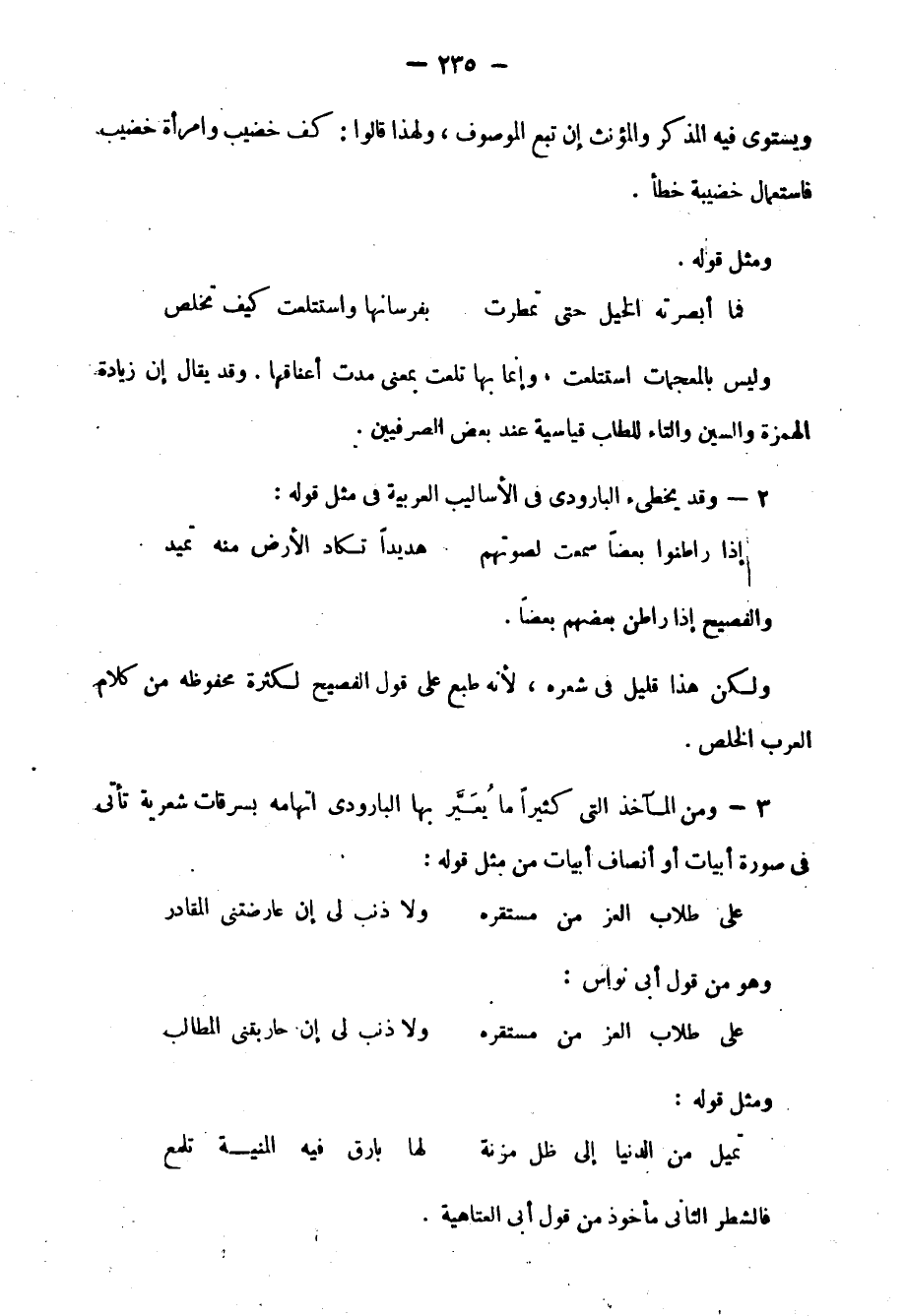 ولكن هذا قليل في شعره؛ لأنه على قول الفصيح لكثرة محفوظه من كلام العرب الخلص.