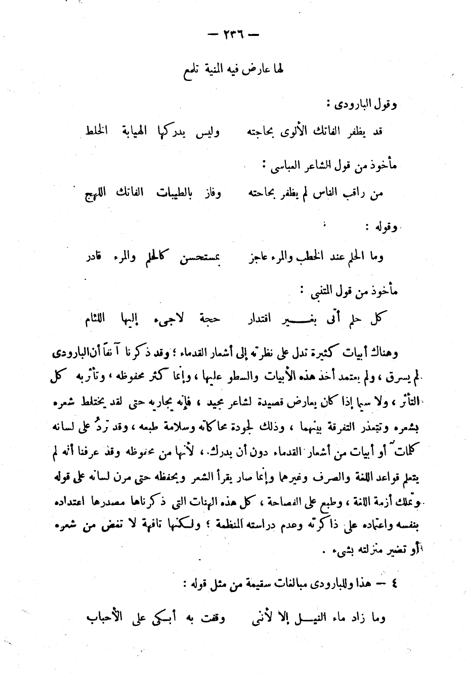 4- هذا وللبارودي مبالغات سقيمة من مثل قوله: