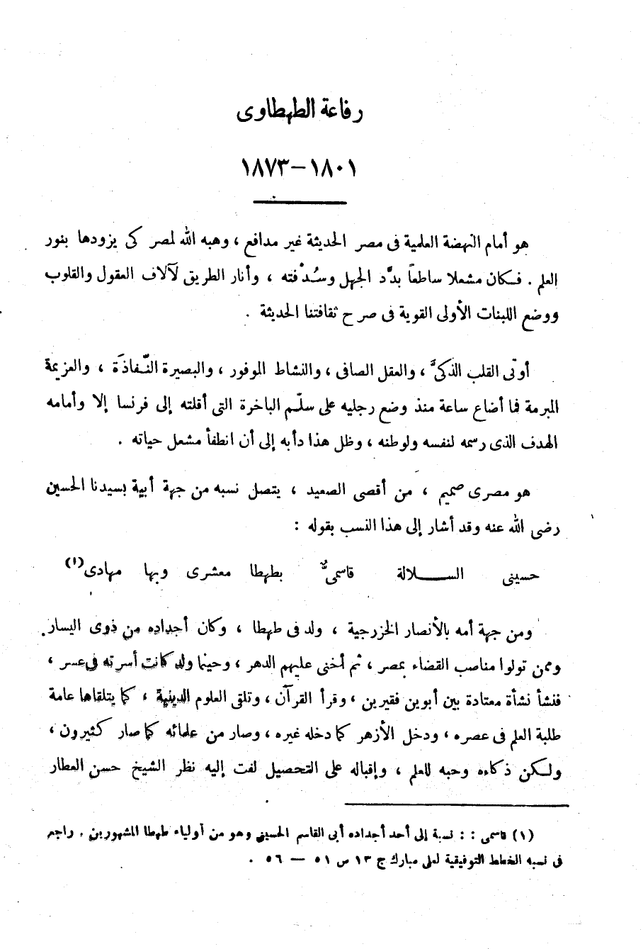 1 راجع الرسالة: في تخليص الإبريز لتلخيص باريز, لرفاعة بك ص151، وفي تاريخ الحركة القومية لعبد الرحمن الرافعي ج3 ص455.