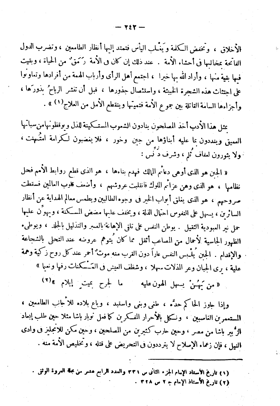 واستمع كذلك إلى الأستاذ الشيخ محمد عبده كيف يحرض الأمة على خلع نير العبودية، والحد من سطوة الحاكم الغاشم، وينعى عليه جهله وسفالته: