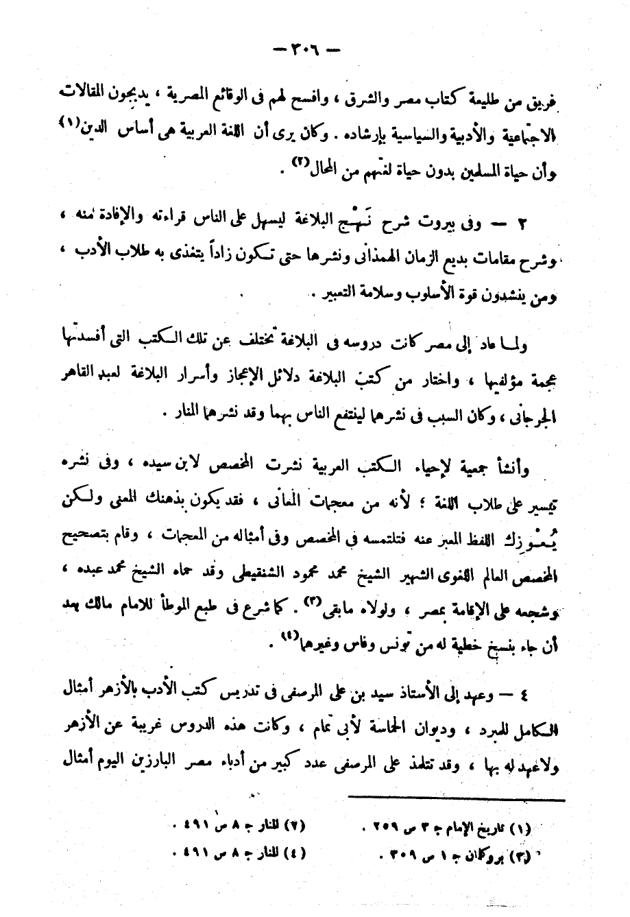 4- وعهد إلى الأستاذ سيد بن علي المرصفي في تدريس كتب الأدب بالأزهر, أمثال: "الكامل" للمبرد، و"ديوان الحماسة" لأبي تمام، وكانت هذه الدروس غريبة عن الأزهر, ولا عهد له بها، وقد تتلمذ على المرصفي عدد كبير من أدباء مصر البارزين اليوم, أمثال: المنفلوطي، وطه حسين، والزيات، والزناتي, وغيرهم, فهم أثر من آثار توجيهه وإرشاده.