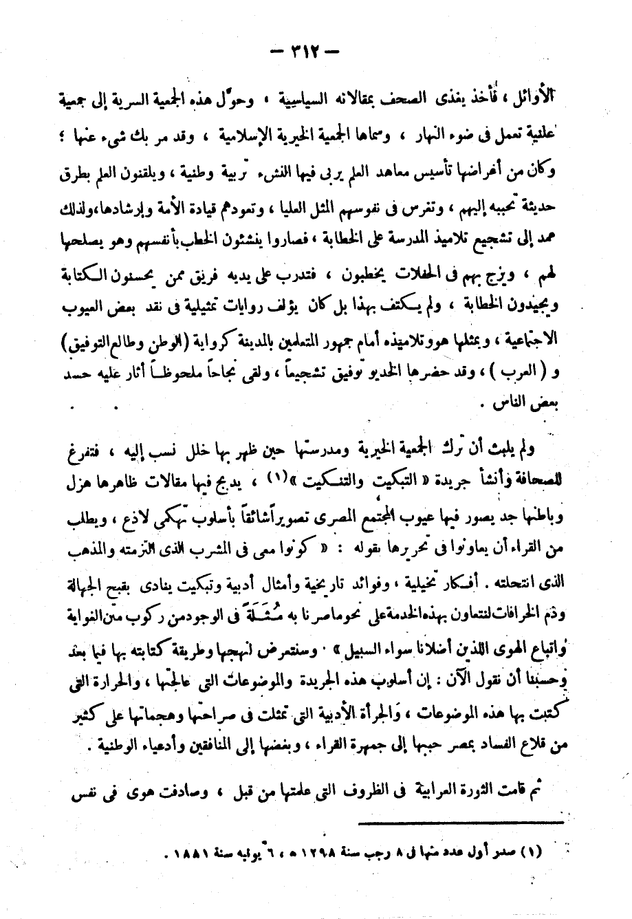 1 صدر أول عدد منها في 8 رجب سنة 1298، 6 يونيه سنة 1881.