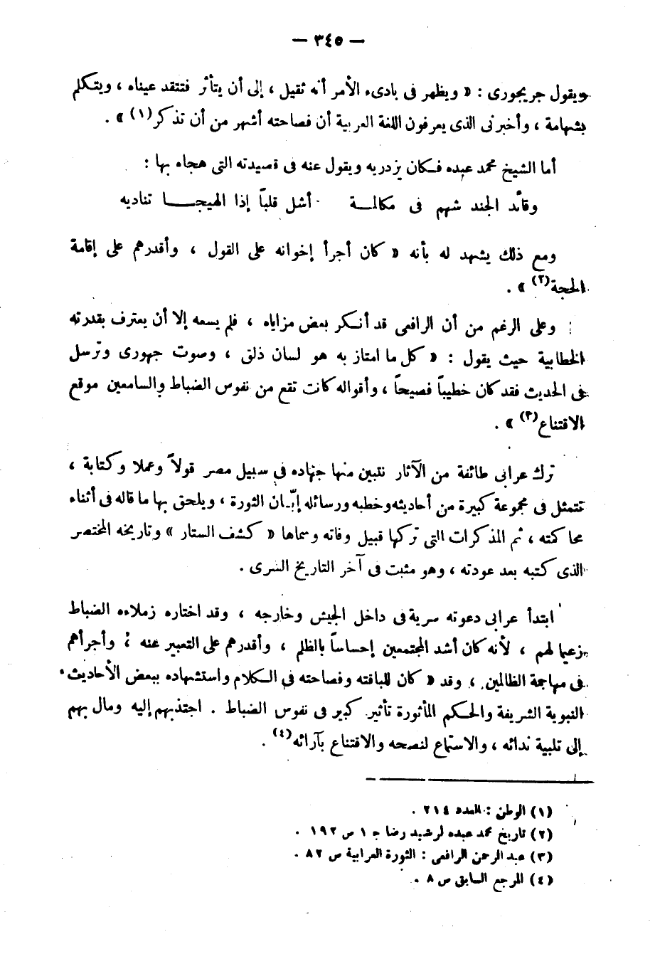 وترسل في الحديث، فقد كان خطيبًا فصيحًا، وأقوله كانت تقع من نفوس الضباط والسامعين موقع الاقتناع1".
