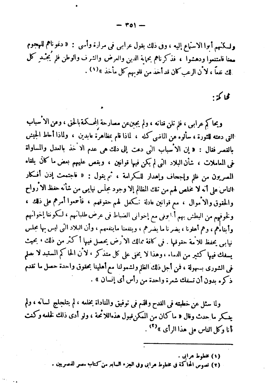 1 نصوص المحاكمة في مخطوط عرابي, وفي الجزء السابع من كتاب "مصر للمصريين".