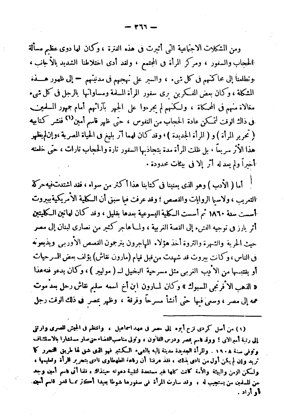 وهناك "علم الاجتماع" وقد مرَّ بك كيف بدأ هذا العلم على يد جمال الدين ومدرسته, وكيف شخصت أدواء الأمة الاجتماعية، ووصف لها الدواء على يد أديب إسحاق وعبد الله نديم ومحمد عبده، ولكن ما كتبه هؤلاء لم يبن على أصول علمية ثابتة، وقواعد مقررة، وإنما كان وليدة الخبرة والملاحظة والتجربة، وكان لا بُدَّ للنهوض بهذا العلم من دراسته عند علماء الغرب, ونقل أجلّ آثاره، مع تطبيق نظرياته على المجتمع المصريّ وعاداته وتقاليه وشرائعه وبيئته.