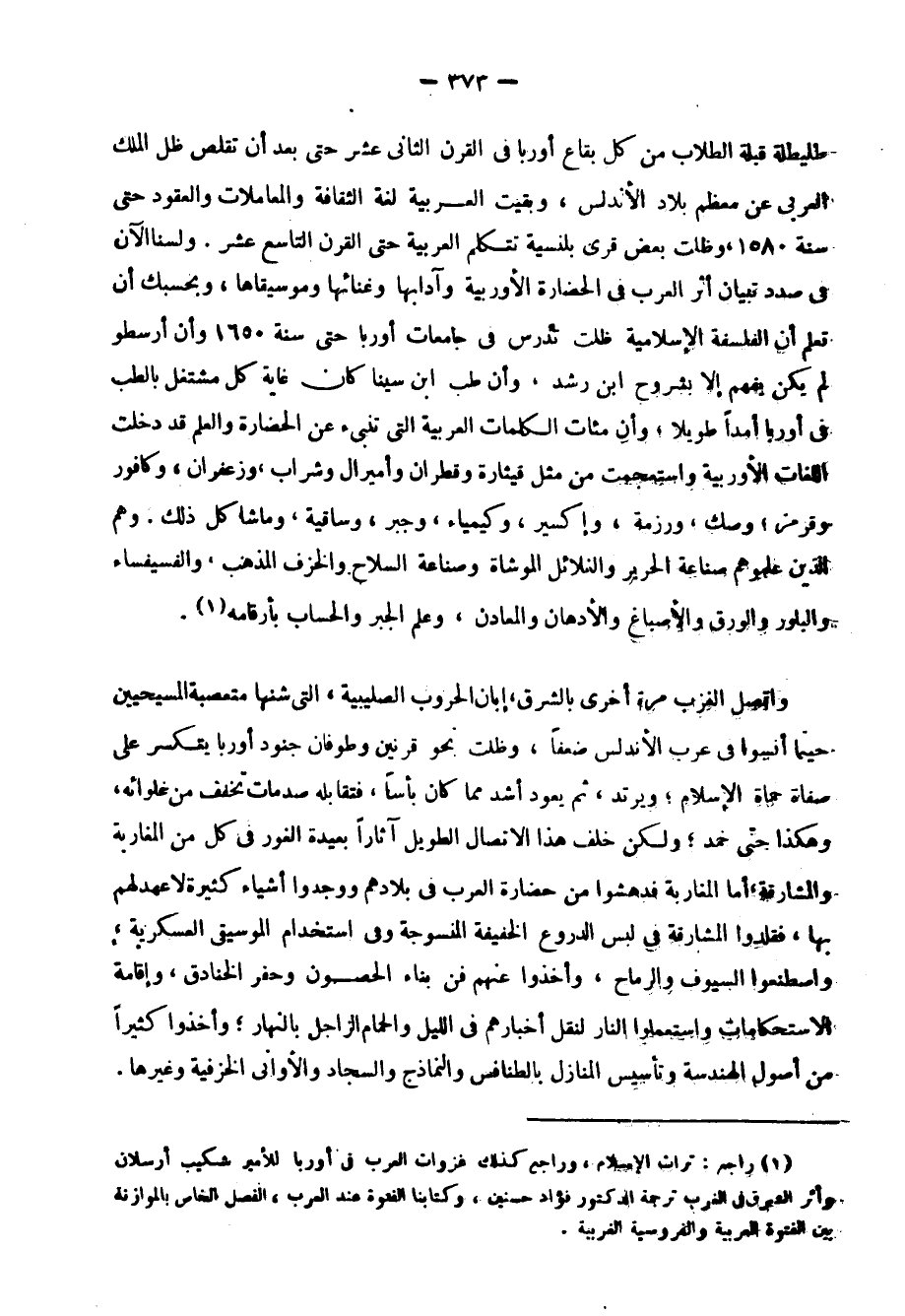 وطئت أقدام العرب كثيرًا من أرض القارة الأوروبية, وعبرت بعضها عبور المسافر أو المغامر أو التاجر، ووقفت في بعضها وقفة الفاتح القادر، فعبروا فرنسا عبورًا سريعًا, وامتد طوفانهم إلى أودية "بوردو"، وتألب عليهم أوشاب أوربا من فرنسيين وألمان, وسواهم, حتى انحسر طوفان العرب عن فرنسا غب معركة