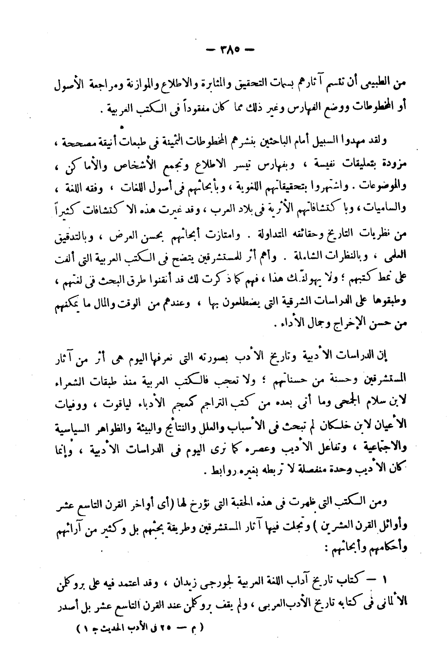 وهذا وقد اشتهر في كثير من الدول بعض أفراد المستشرقين مثل: سانتلاتا، ونيلنو، وجويدي الكبيرن وجويدي الابن في إيطاليا1، والبارون كريمر, والدكتور مونر في النمسا، وفنديك، وماكدونالد, وشارلز آدمس في أمريكا، وكريمرسكي في بولندا, وبول كراوس في تشكوسلوفاكيا2، وبركلمن في ألمانيا، وكتابه في تاريخ الأدب العربي من أهم المراجع المعتمدة, ولا سيما تلك الملاحق التي