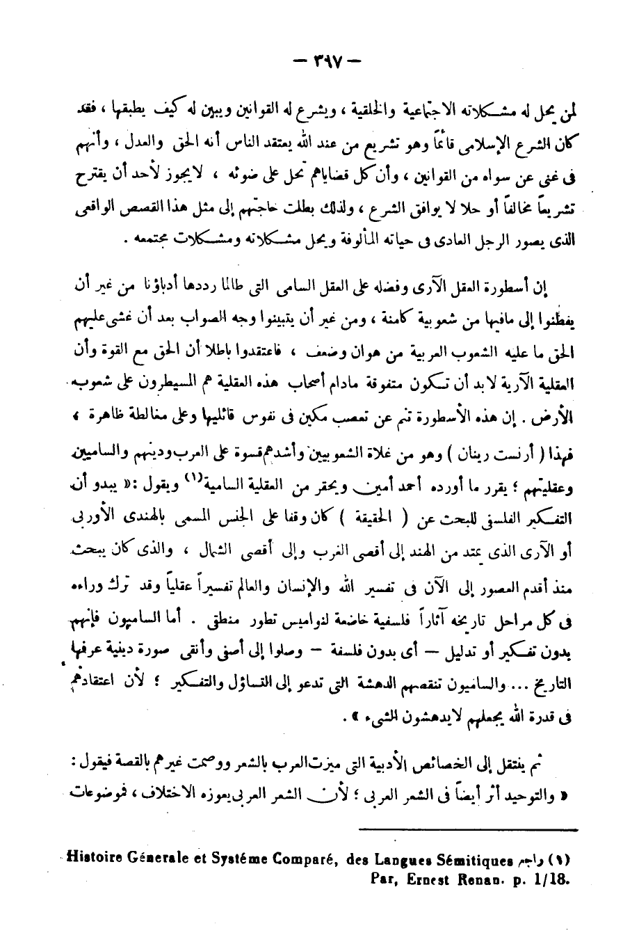 أشياء كثيرة, حتى خرج من كل ذلك كتاب ألف ليلة وليلة، وهو ما هو عند الغربيين في الخيال الغريب والتأليف العجيب، والأجواء الساحرة، والافتنان في تصوير الشخصيات, وأنواع الملذات, فصار مضرب المثل، ومنبعًا ينهل منه كل من يريد أن يوصف بسعة الخيال، وشروده وجموحه، وقد أثر هذا الكتاب كثيرًا في الأدب الغربيّ منذ ترجم إلى اليوم -كما مر بك، مع أن جمهرة أدباء العرب لا يعترفون بسمو أدبه، ولا يقرون بعبقرية فنه، بل يعدونه أدبًا شعبيًّا يصلح للعامة في أسمارهم، والنساء في أويقات سرورهن، والأطفال في لهوهم وأحاديثهم، وفي العصر الحديث حين اتصل العرب بالأدب الغربيّ لم يرقهم منه إلّا الأدب الإبداعي "الرومانطيقي1" الذي يصور الأبطال، ويغرب في الخيال, ويترجم عن العواطف الجياشة, وظلوا حتى اليوم يعربونه ويحاكونه معرضين عن الأدب الواقعي إلّا القليل، مع أن الغربيين قد نفضوا أيديهم من هذا اللون الأدبي منذ مائة سنة، وعمدوا إلى الأدب الواقعي التحليلي كي يعالجوا به مشكلاتهم الاجتماعية المعقدة، وقد حاولت مدرسة لطفي السيد الأدبية أن تدخل الأدب التحليلي الواقعي، وظهرت لذلك آثار لم ترق بعد إلى المرتبة التي وصل إليها المنفلوطي أو الزيات في الأدب الرومانطيقي2".