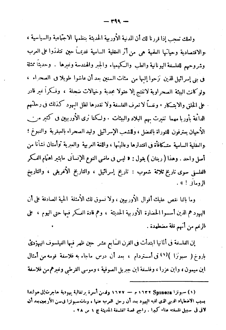 فسلفة- وصلوا إلى أصفى وأنقى صورة دينية عرفها التاريخ.. والساميون تنقصهم الدهشة التي تدعو إلى التساؤل والتفكير؛ لأن اعتقادهم في قدرة الله يجعلهم لا يدهشون لشيء".