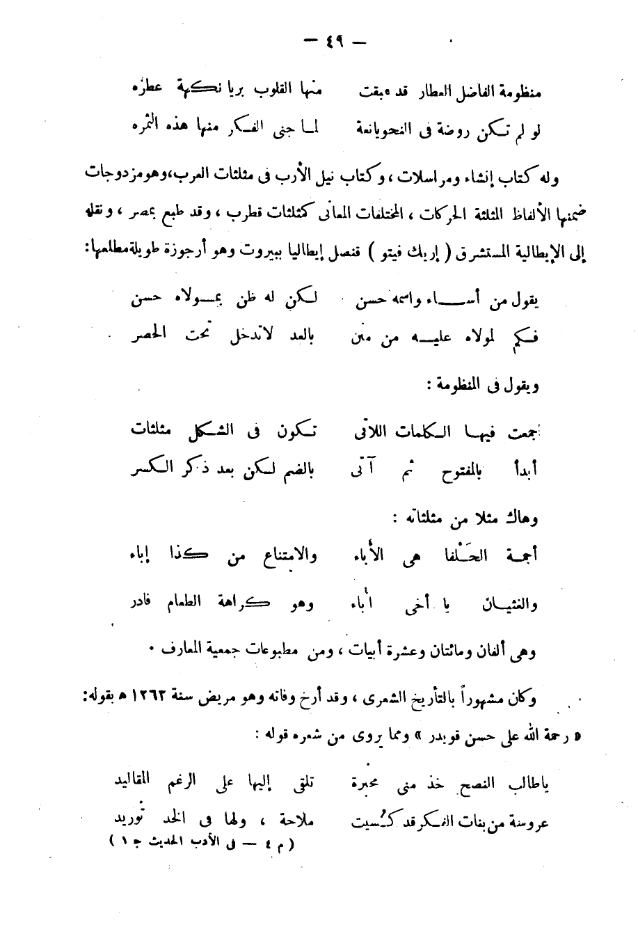 وله قصيدة تسمى: المزدوجة جاء منها، وهي طويلة: