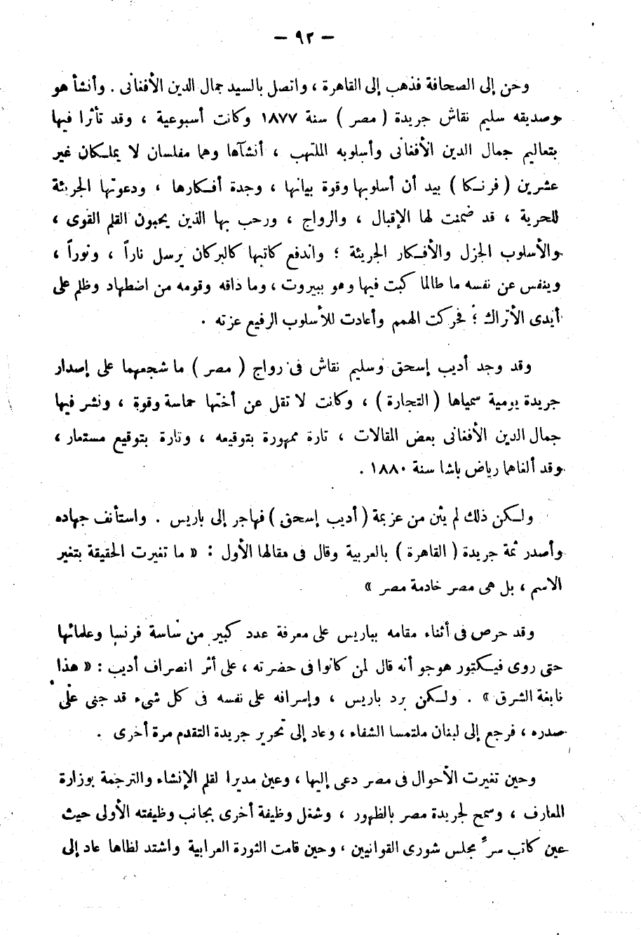 وكيف لا؟ وهو حاجة النفس, وأمنية القلب، منذ توجه الخاطر إلى السياسة الوطنية، وانصرف العزم إلى إحياء الهمم، وانعقدت النية على حفظ الحقوق، واتحدت الوجهة في القيام بالواجبات، وهو النشأة التي كست الوطن رداء الفتوة قشيبًا، وهو البنية التي غرست للأمة غصن الأمل رطيبًا، وهو ما رجوناه زمانًا, ودافعنا الزمن فيه، وتمنيناه أعوامًا, وغلبنا الحدثان عليه، فيها حسنه من يوم رد فائت البهاء، وأحيا مائت الرجاء، وأعاد شباب الأمة، وسدل ستور النعمة، وأظهرت مقاصد الأمير، وأيَّد مساعي الوزير، وقضى لبانات النبهاء، وحقق أماني النزهاء1".