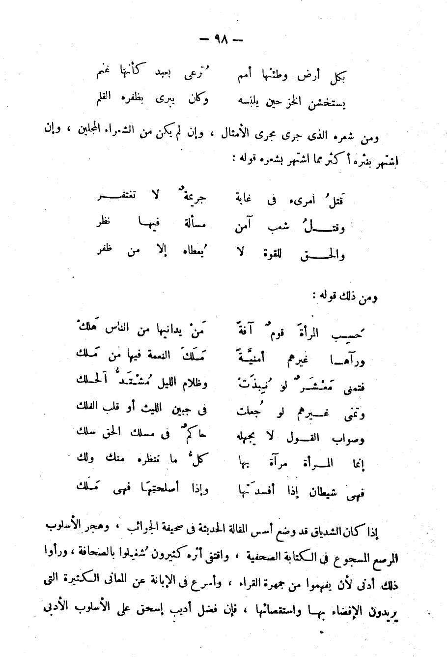 هذا النهضة الصحفية خلصت اللغة من أسرها القديم، وأوضارها التي ورثتها من عصور الضعف، وخاضت في موضوعات شتَّى كما ذكرنا، وسلس الأسلوب، واحتذى الصحفيون أسلوب ابن خلدون في مقدمته، وذلك الأسلوب المرسل السهل، وإذا وازنَّا بين أسلوب النثر الصحفيّ في هذا العهد الذي نتحدث عنه، وأسلوب الكتابة في العصر السابق, وجدنا البَوْنَ شاسعًا، وقد مرَّت بك نماذج من هذه الكتابة الصحفية, يتجلى فيها أثر التحرر اللغويّ والفكريّ، وقوة البيان، وطرافة الموضوع، وإليك ما قال بعض قادة النهضة الصحفية في الحثِّ على العلم والاهتمام بالبيان، وطريقة الكتابة، راسمين للشادين في الصحافة الطريقة القويمة.