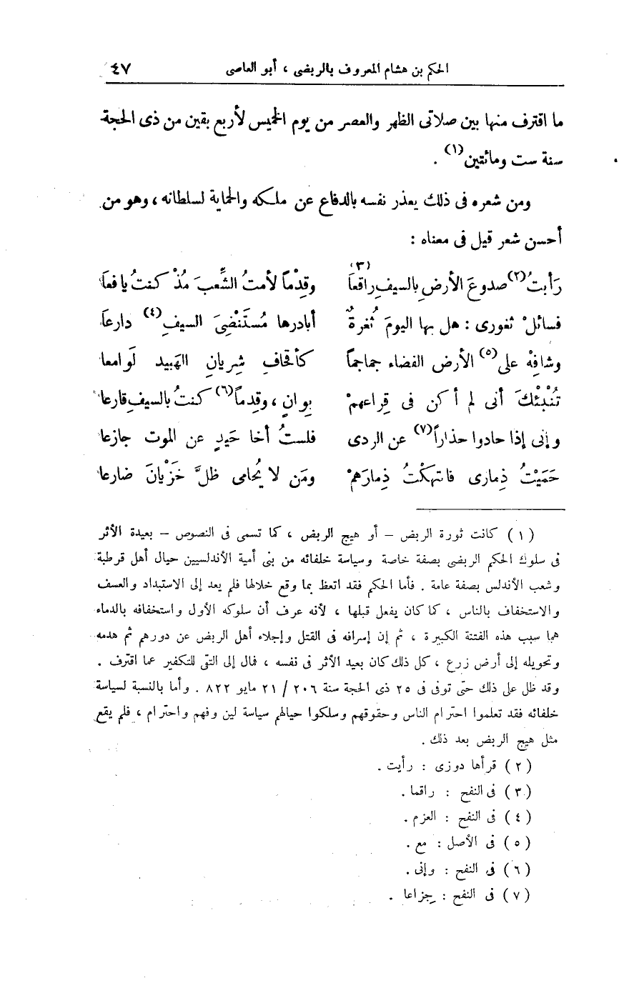 وَبَقِي عمرَان بالزاب إِلَى وَفَاة إِبْرَاهِيم ومصير الْأَمر إِلَى ابْنه أبي الْعَبَّاس عبد الله فَكتب إِلَيْهِ عمرَان يسْأَله تَجْدِيد الْأمان فَأَمنهُ وَأَسْكَنَهُ الْقصر مَعَه وَكَانَ يَغْدُو عَلَيْهِ وَيروح إِلَى أَن سعى بِهِ وَقيل لعبد الله هَذَا ثار على أَبِيك وحاله حَاله فَبعث إِلَيْهِ فِي الظهيرة فَلم يشك فِي الشَّرّ وَكَانَ عبد الله قد قَالَ لمولى لَهُ إِذا ورد على وَهُوَ مشتغل بِالنّظرِ فَلَا يشْعر إِلَّا وَقد رميت بِرَأْسِهِ فَكَانَ ذَلِك على مَا حَده وَكَانَ يحيى بن سَلام الْفَقِيه صَاحب التَّفْسِير قد سفر بَينهمَا فِي الْأمان على مَاله وَنَفسه وَولده فَلَمَّا قَتله وجد لذَلِك وَقَالَ لَا أسكن بَلَدا أَخْفَر فِيهِ الْعَهْد على يَدي فَخرج إِلَى مصر ثمَّ مضى إِلَى مَكَّة فحج وَرجع فَلم يلبث إِلَّا يَسِيرا حَتَّى أعتل وَمَات وَدفن بِمصْر سنة مِائَتَيْنِ وَمن شعر عمرَان فِي حَرْب إِبْرَاهِيم بن الْأَغْلَب مَعَ تَمام بن تَمِيم وَقد برز من الصَّفّ