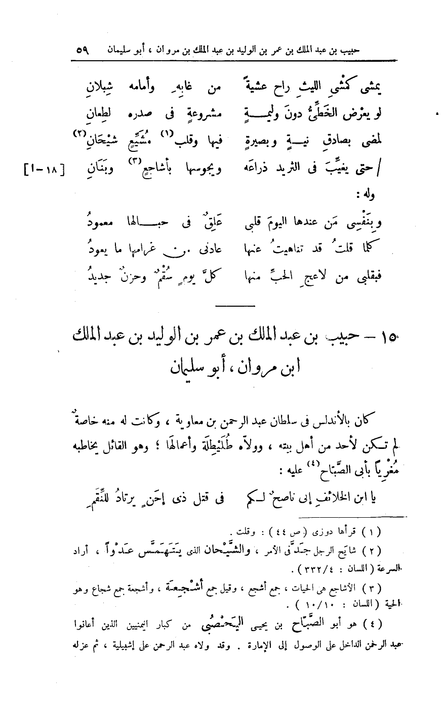 فأعجب الْأَمِير عبد الرَّحْمَن ببديهته وتحرك طبعه لِلْقَوْلِ وَأَنْشَأَ يَقُول مناغياً على رويه
