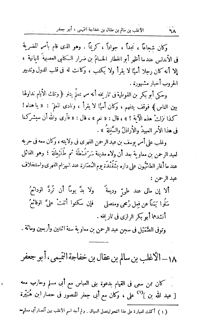 وليعقوب وَبشر هذَيْن إخْوَة جلة مِنْهُم هِشَام وَكَانَ من أهل الْعلم وَالْفضل وَالْبَصَر بِالْعَرَبِيَّةِ وَأكْثر من الرِّوَايَة عَن يحيى بن يحيى وَكَانَ أَبوهُ الْأَمِير عبد الرَّحْمَن الحكم قد نَصبه فِي خِلَافَته للصَّلَاة على جنائز أهل قصره وأكابر رِجَاله كَمَا نصب عبد الرَّحْمَن بن مُعَاوِيَة ابْنه هشاماً وَمِنْهُم أبان وَعُثْمَان على أختلاف فِيهِ وهما ابْنا عبد الرَّحْمَن بن الحكم وَكَانَا أديبين شاعرين وَسَيَأْتِي ذكرهمَا فِي آخر التَّأْلِيف إِن شَاءَ الله تَعَالَى