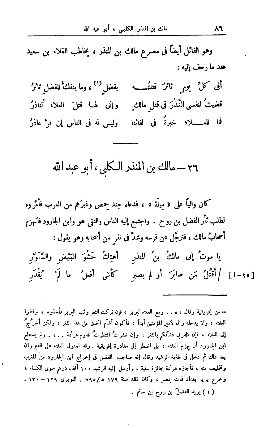 لى تَمام بن عَامر خطة الوزارة للأمير مُحَمَّد بن عبد الرَّحْمَن وولديه الْأَمِير بن الْمُنْذر وَعبد الله فأنتظمت وزارته لثَلَاثَة من الْخُلَفَاء وَعمر عمرا طَويلا زَائِدا على عمر جده الْأَكْبَر وَكَانَت وَفَاته فِي جُمَادَى الْآخِرَة سنة ثَلَاث وَثَمَانِينَ وَمِائَتَيْنِ وَقد بلغ سِتا وَتِسْعين سنة وَله الأرجوزة الْمَشْهُورَة فِي ذكر افْتِتَاح الأندلس وَتَسْمِيَة ولاتها وَالْخُلَفَاء فِيهَا وَوصف حروبها من وَقت ذخول طَارق بن زِيَاد مفتتحها إِلَى آخر أَيَّام الْأَمِير عبد الرَّحْمَن بن الحكم