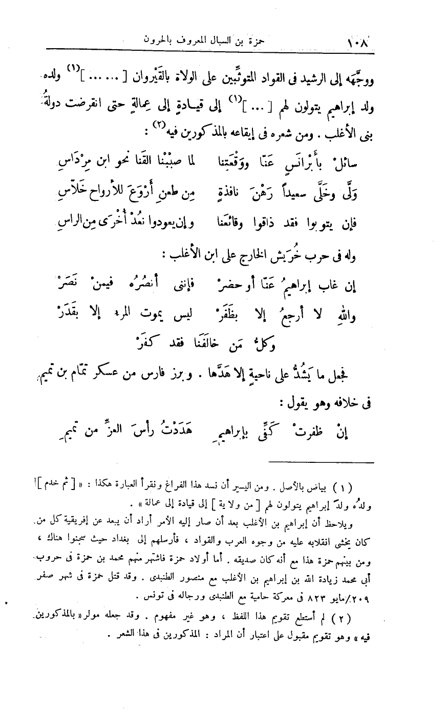 إِذْ قتل لَيْلًا بالمطبق إِبْرَاهِيم بن مُحَمَّد بن عبد الْوَهَّاب بن إِبْرَاهِيم الإِمَام بن مُحَمَّد ابْن عَليّ بن عبد الله بن الْعَبَّاس الْمَعْرُوف بِابْن عَائِشَة وَأَصْحَابه فَقَالَ حِين فرغ من ذَلِك